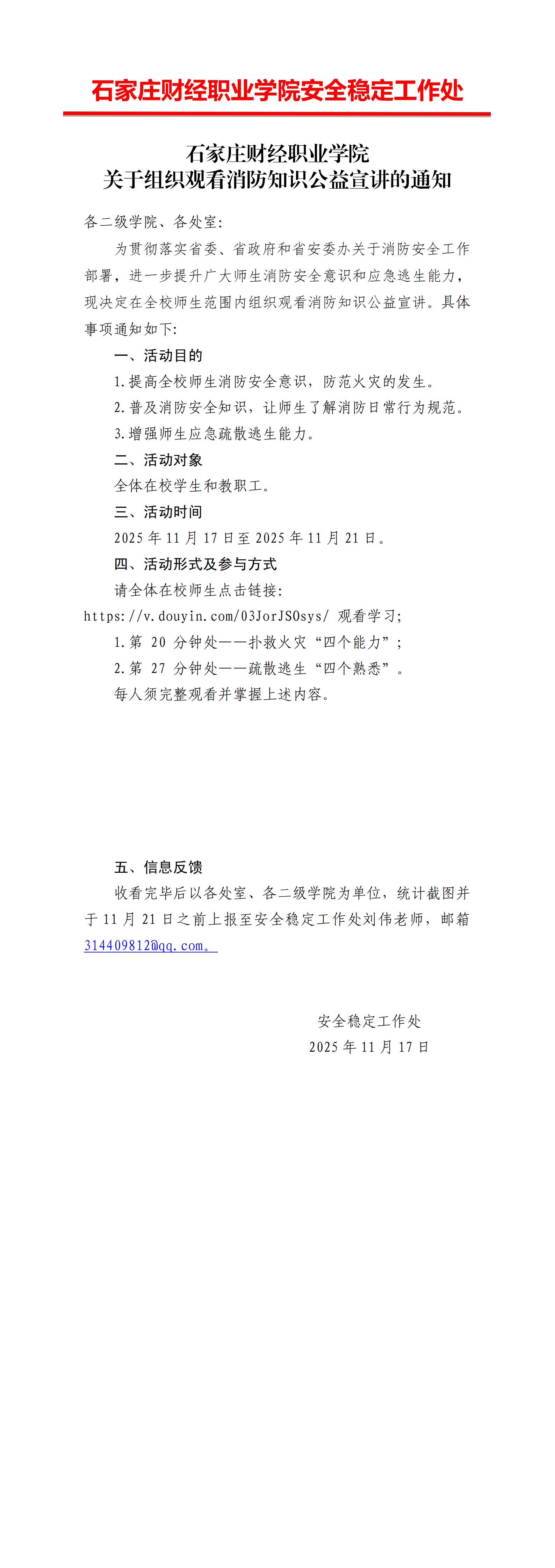 Beat365官方网站 关于组织观看消防知识公益宣讲的通知