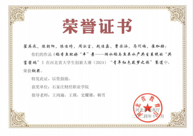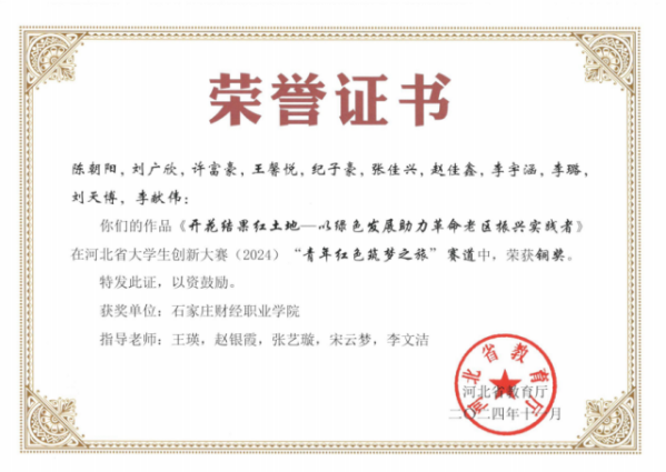 • 河北省大学生创新大赛(2024)“青年红色筑梦之旅”赛道铜奖