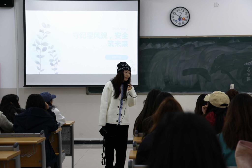 班会上,各班级辅导员围绕“纪律意识塑造”与“文明行为养成”两大主线,结合学生日常学习生活实际,系统展开教育引导。在“校规校纪学习与纪律教育”部分,辅导员重点强调五项内容:一是校园行为规范讲解,结合学生手册及近期检查情况,明确课堂纪律、宿舍管理、网络言行等方面的具体要求,强化学生规则意识;二是文明礼仪与集体观念培养,引导学生注重日常言行,尊重师长、友爱同学,增强班级凝聚力和集体荣誉感;三是诚信教育与考风考纪重申,组织学习考试违规处理办法,剖析典型案例,树立“诚信立身”的观念;四是安全意识与防范能力提升,围绕人身安全、财产安全、网络安全等开展教育,特别针对防诈骗、防火灾等内容进行重点宣讲;五是自我管理与成长规划,鼓励学生制定个人发展计划,合理规划时间,积极参与校园文化活动和实践项目,实现全面发展。