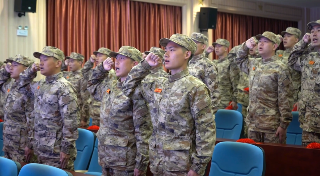 “我宣誓:服从中国共产党的领导,全心全意为人民服务,服从命令.....”全体新兵胸戴大红花,英姿飒爽,群情激昂,庄严宣誓,他们纷纷表示,将用实际行动证明,参军报国,不负青春,争取早日成为一名优秀的战士!