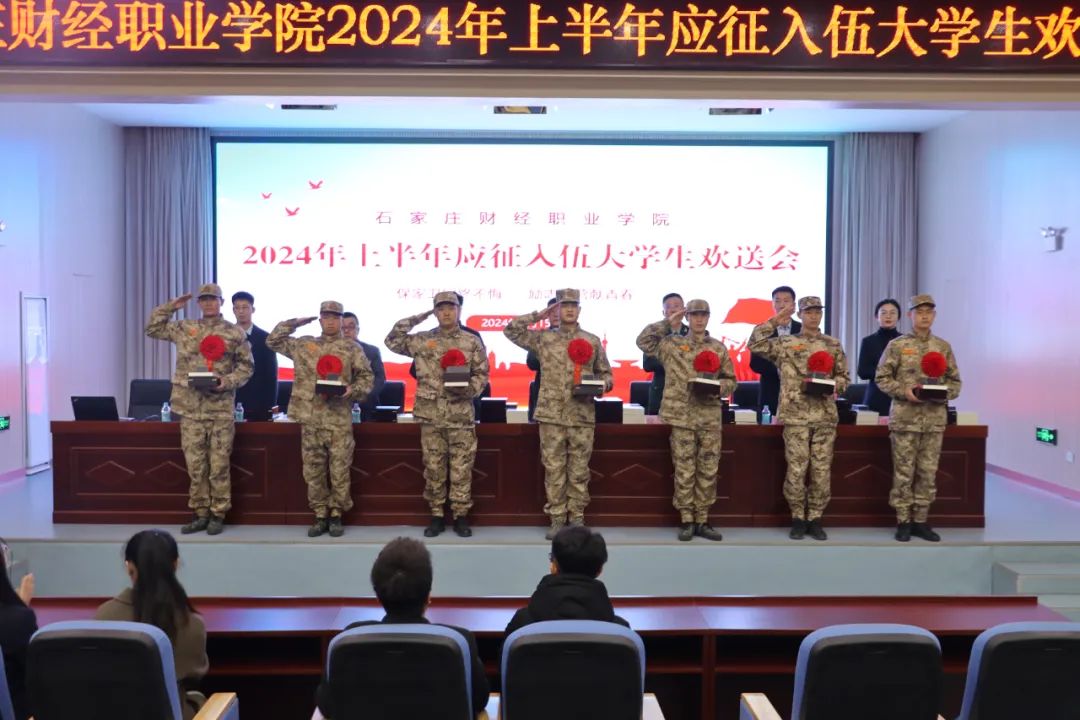 学校征兵工作自去年末发动以来,区武装部各级领导悉心指导,学校领导、各二级学院高度重视、全力推进,同学们踊跃报名积极响应,经过历时两个多月的严格体检、政考、役前教育等环节,最终定兵38人,创造了单次从学校定兵人数之最。他们即将奔赴军营,开启建功立业的光荣之旅。