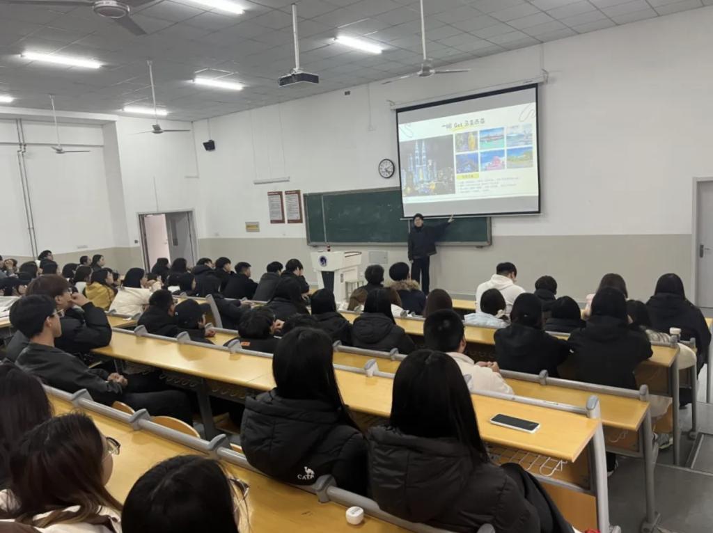 王兆基老师以“一段连接热带雨林与华北平原的旅程”为引,迅速吸引了同学们的注意力。他详细介绍了马来西亚高等教育体系,以及其母校的校园环境、教学模式和国际化氛围。王老师提到,马来西亚作为一个多元文化交融的国家,拥有来自世界各地的学生,极大地锻炼了他的国际交往与适应能力。