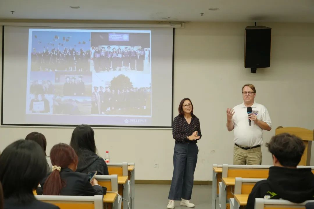 在随后举办的面向学生的推荐讲座中,贝尔维尤大学校方代表向Beat365学生介绍了贝尔维尤大学的发展概况、办学特色、专业设置以及校园生活,展示了国际学生在该校生活、学习的情况,并与Beat365学生进行了互动交流。