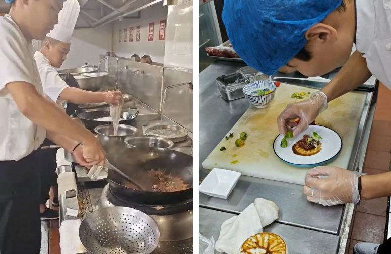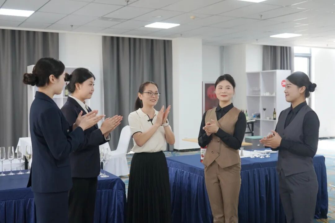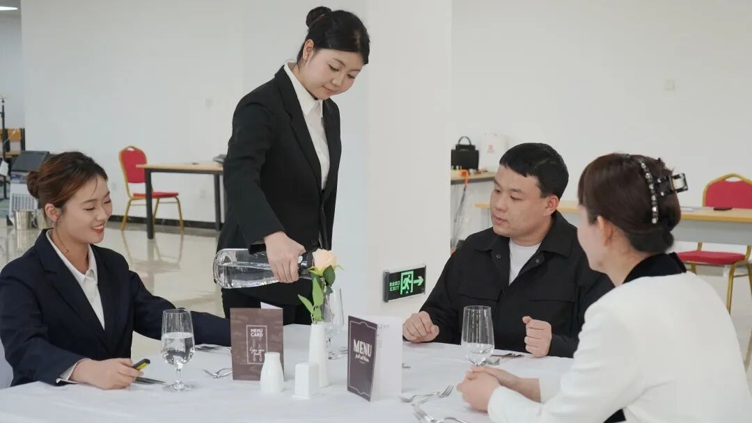 荣誉背后是团队8个月的艰辛攻关。在杨利、梁尹老师指导下,团队积极应对赛制变化、场地设备等诸多挑战。针对大赛新增烹饪考核环节,团队深入万豪国际集团、石家庄神州七星酒店调研,学习先进烹饪技艺,强化酒水、中餐服务等核心技能。期间,重点攻克了“花嬉脆鳞鱼”这一参赛作品,每日6小时密集刀工训练,严格把控斜刀技法、火候以及摆盘细节。同时,向行政大厨等专家请教“糖菓子”等非遗菜品的制作技艺,引入智能营养系统核算菜品指标,成功实现了传统与现代的完美结合。经过30余次的方案迭代,从动作规范到PPT细节,团队始终秉持严谨态度,力求每一个环节都尽善尽美,为最终荣获铜奖奠定了坚实的基础。