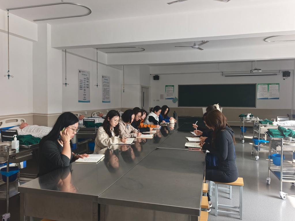 为全面落实“立德树人”根本任务,深入推进课程思政教学改革,探索构建护理学专业育人新体系,10月15日,护理与健康学院全体教师与马克思主义学院教师在实训楼C310共同开展以“思政专业双师协同构建育人新格局”为主题的集体教研会。随后,基础护理教研室在实训楼C306对集体教研活动展开具体研讨。会议由教研室主任主持,教研室全体10名教师齐聚一堂。就如何有效推动思政元素与专业教学深度融合进行了深入且富有成效的集体研讨。