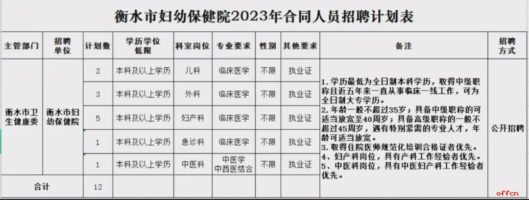3、岗位有其他要求的以岗位要求为准,详见《衡水市妇幼保健院2023年合同人员招聘计划表》。