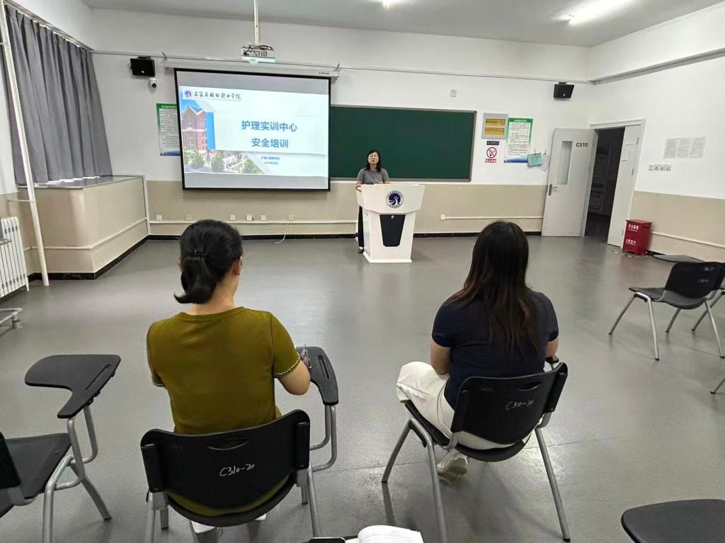 培训伊始,实训室管理员贾翠翠老师围绕实训室核心安全制度展开详细讲解。从防火、防盗、防爆、防毒的 “四防” 教育,到消毒酒精等危险物品的规范使用;从消防器材的存放位置与使用方法,到紧急逃生通道的具体路线,管理员逐一拆解关键要求。针对实训过程中可能出现的火灾、触电、针刺伤等突发情况,重点解读了应急预案流程,明确应急处置步骤与责任分工,并告知学院安全管理员、实训中心主任及学校安全稳定处的应急联系方式,确保新教师在突发状况下能快速响应、规范处置。