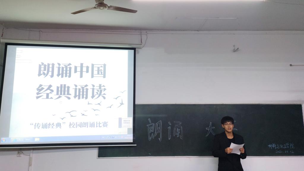 为诠释中华优秀文化内涵,彰显中华语言文化魅力,弘扬中国精神,10月12日晚7点,88038威尼斯官网在四教102教室举行了“朗诵中国”经典诵读大赛。