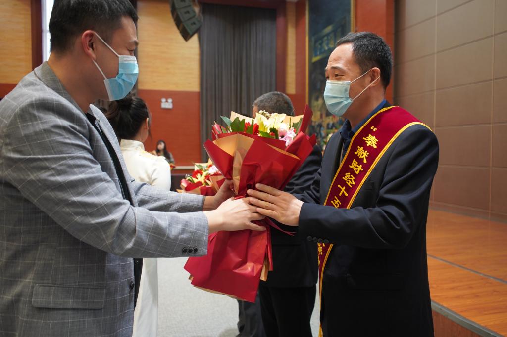 校领导分别为“爱心服务者”“抗疫坚守带头人”“最美防疫先进集体”“最美坚守先进集体”获奖代表颁发证书与奖金。