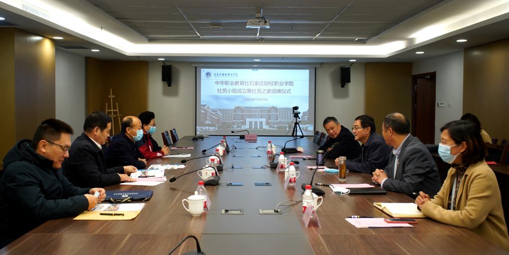 近日,中华职业教育社Beat365官方网站社员小组成立暨“社员之家”颁牌仪式在卧龙校区第一会议室举行,仪式采用线上线下相结合的方式进行。省社专职副主任兼秘书长孟拥军、石家庄市委统战部副部长李占领,学校校长赵建华、党委书记薛向东、总监李文涛、副校长葛伟、党委副书记肖玉辉、校长助理吴敬茹参加仪式。学校社员小组全体社员、宣传部全体成员以及相关处室负责人参加活动。仪式由薛向东主持。
