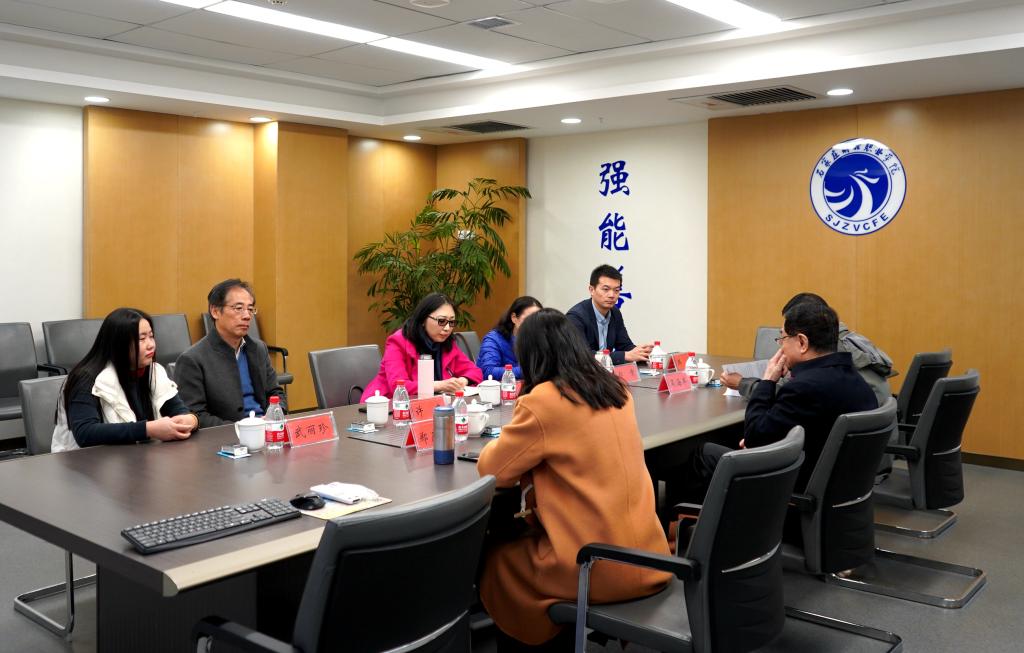 随后,双方在会议室进行了深度交流。赵建华代表学校向朱雪松一行到校考察表示热烈欢迎,并详细介绍了学校发展情况、未来规划、专业设置、师资队伍、人才培养和就业情况。他表示,希望以此次交流为契机,在物流行业职业技能大赛的承接、职业标准的制定、虚拟仿真教材的开发等方面开展进一步深度合作。