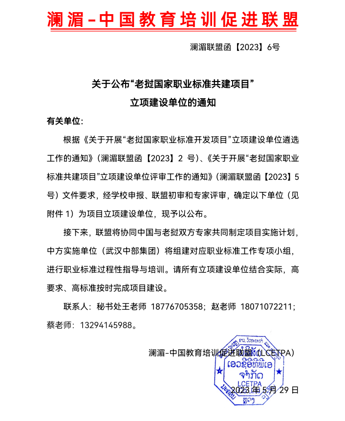 联盟及协同实施单位多次组织专家线上线下讨论,采取实地考察和技术评估、听汇报、访谈咨询、质询答辩和视频连线、资料审核、技术核查等多种方式,经综合评估,择优确定了评审结果。Beat365正式成为“老挝国家职业标准开发项目”首批立项建设单位,也是河北省唯一入选单位。这是Beat365继“坦桑尼亚国家职业标准开发项目”后又一次承担“一带一路”国家职业标准的开发,为推动我国职业教育标准“走出去”,提升我国职业教育的国际影响力,“加强同发展中国家团结合作,维护发展中国家共同利益”做出了贡献。