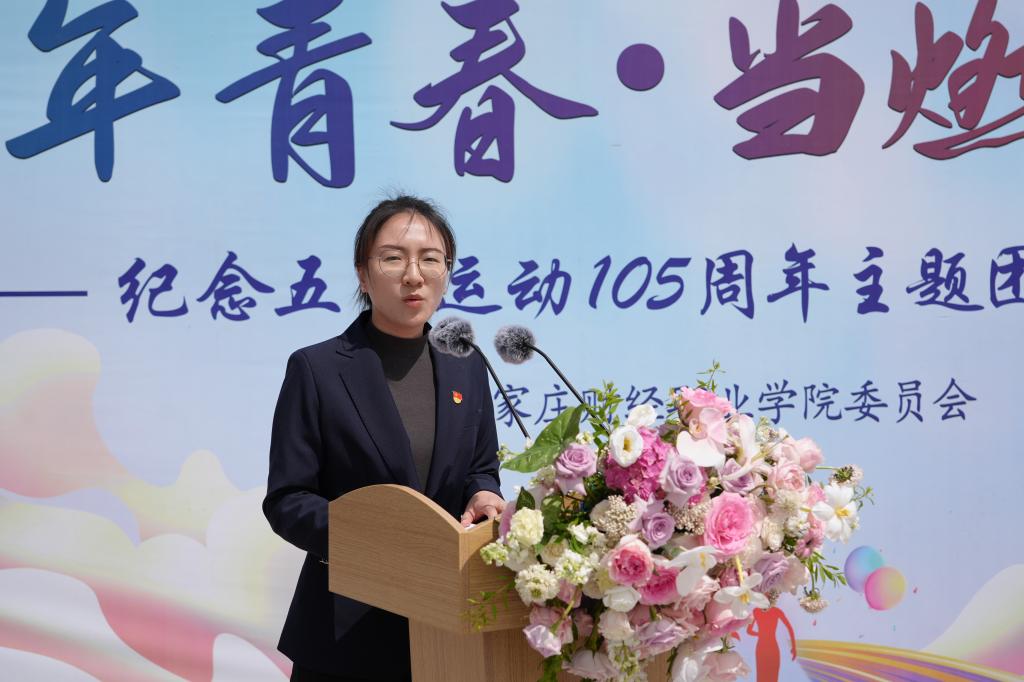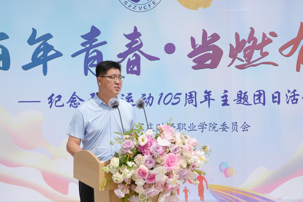 学校副校长王永利在致辞中讲到广大青年要坚定不移听党话、跟党走,怀抱梦想,脚踏实地,立志做有理想、敢担当、能吃苦、肯奋斗的新时代好青年,让青春在全面建设社会主义现代化国家的火热实践中绽放绚丽之花。