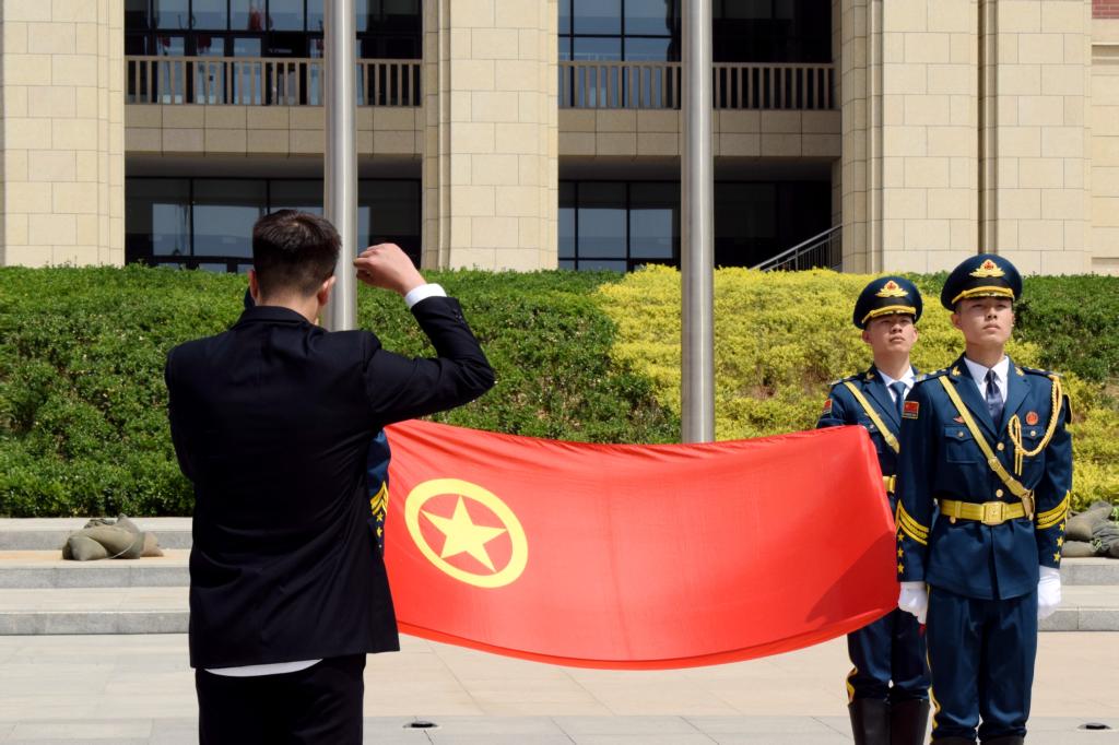 “起来!不愿做奴隶的人们……”万众齐声唱响国歌,如潮水般涌动的力量托举起每个人的骄傲与自豪。