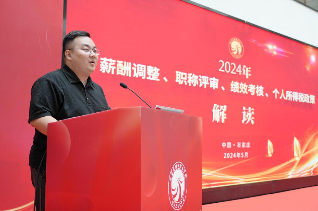 学校校长赵建华作总结讲话,他指出,此次解读会事关广大教职工的切身利益,事关学校事业发展。他强调了四项会议精神:一是薪酬调整作为广大教职工较为关心的问题,也是学校致力于提升教职工福利待遇和职业幸福感的重要环节。薪酬待遇的提升对师资队伍建设及师资结构稳定性都起到了积极的作用。二是绩效考核工作始终坚持成果导向性,体现了教职工多劳多得、优质优酬的原则。三是职称评审文件的解读旨在让教师更清楚的了解2024年职称评审和聘任的条件和标准,为教师的专业成长和职业发展提供指引。四是希望通过纳税知识和各项税费优惠政策的学习,能够进一步提高教职工的纳税申报质效。
