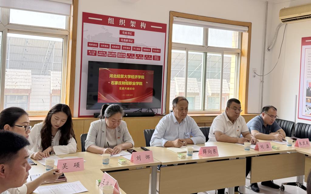 随后,双方围绕党建工作经验分享、学科建设与人才培养、科研合作等议题展开了深入交流。刘振滨书记提出“1246”支部建设工作思路,以党建为引领,推动学科发展与业务建设深度融合。通过"支部书记+系主任"双轨模式,将党建思想转化为业务实践,构建互访学习长效机制,在学科建设、学生管理、校企合作等领域精准发力。他强调,财经商贸类专业转型要紧扣京津冀协同发展战略,对接"三区一基地"建设需求,推进科技、教育、人才一体化培养。在校企共建党支部方面,要立足服务地方产业集群与商务部门,强化人才支撑;鼓励学生深化企业实践,明晰职业方向,为京津冀协同发展注入人才动能。刘娜院长则提出通过挖掘专业课程中的思政元素,打造“党建+课程思政”特色教学模式;同时,通过组建党员教师示范团队,创新开展“课程思政公开课”“红色案例研讨”等教学活动,实现党建理论与专业知识的同频共振。通过深度交流与经验共享,我院在党建创新、学科建设等多方面收获颇丰,为我院后续工作开展提供了重要启发。
