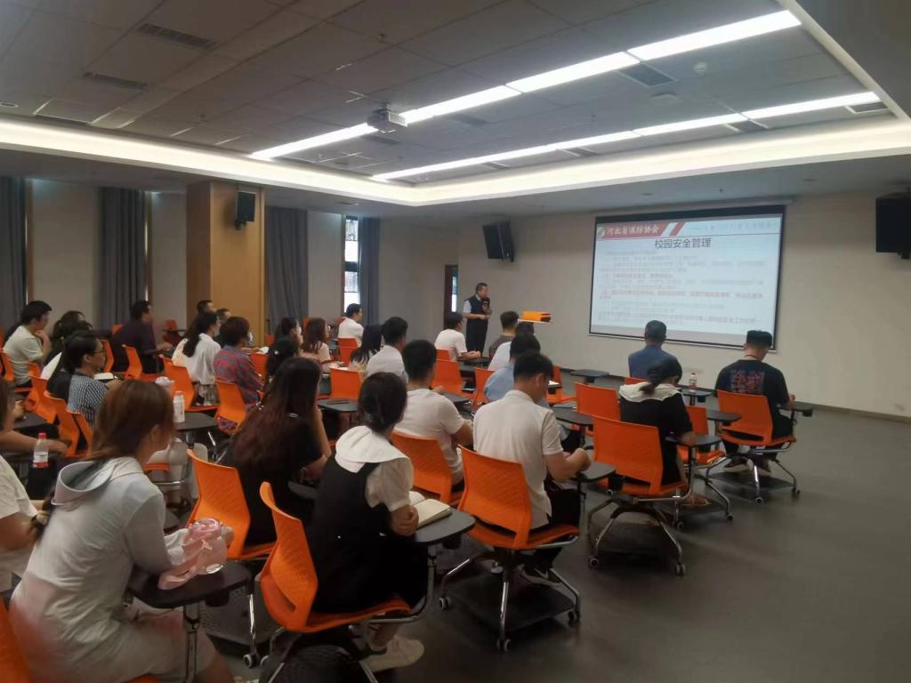 本次培训由学院安全稳定工作处处长李彦亮主持,并且有幸邀请到石家庄市消防协会葛文亮教员到场讲解。