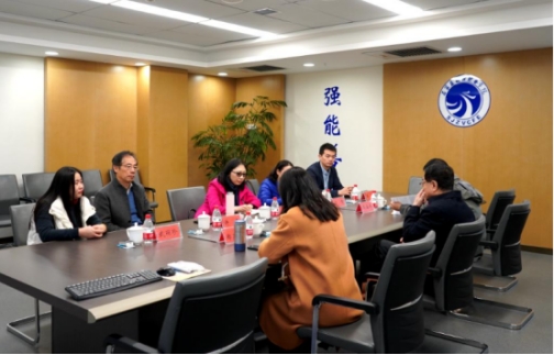 随后,双方在会议室进行了深度交流。赵建华代表学校向朱雪松一行表示热烈欢迎,并介绍了学校发展情况、未来规划、专业设置、师资队伍、人才培养和就业情况。他表示,希望以此次交流为契机,在物流行业职业技能大赛的承接、职业标准的制定、虚拟仿真教材的开发等方面开展进一步深度合作。