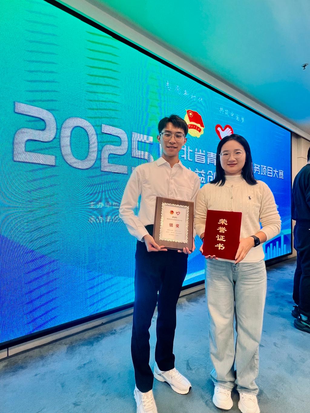 2025年10月16日,由共青团河北省委、省委社会工作部、省教育厅、省水利厅、省文化和旅游厅、省卫生健康委、省残联共同主办,河北省青年志愿者中心、河北省青年志愿者协会、共青团邯郸市委、共青团涉县县委承办的2025年河北省青年志愿服务项目大赛和公益创业赛决赛在邯郸市顺利举办。我院学生葛航旗代表“夕阳红”智能助老服务团队在此次比赛中脱颖而出,斩获大赛银奖,为学校赢得荣誉。