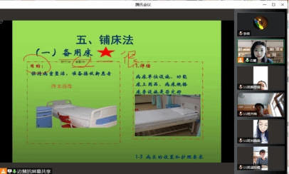 边慧老师教授的“基础护理技术I”课程,讲授的重难点突出。多数学生露脸上课,老师与学生积极互动,及时调动课堂气氛,学生互动响应度较高。