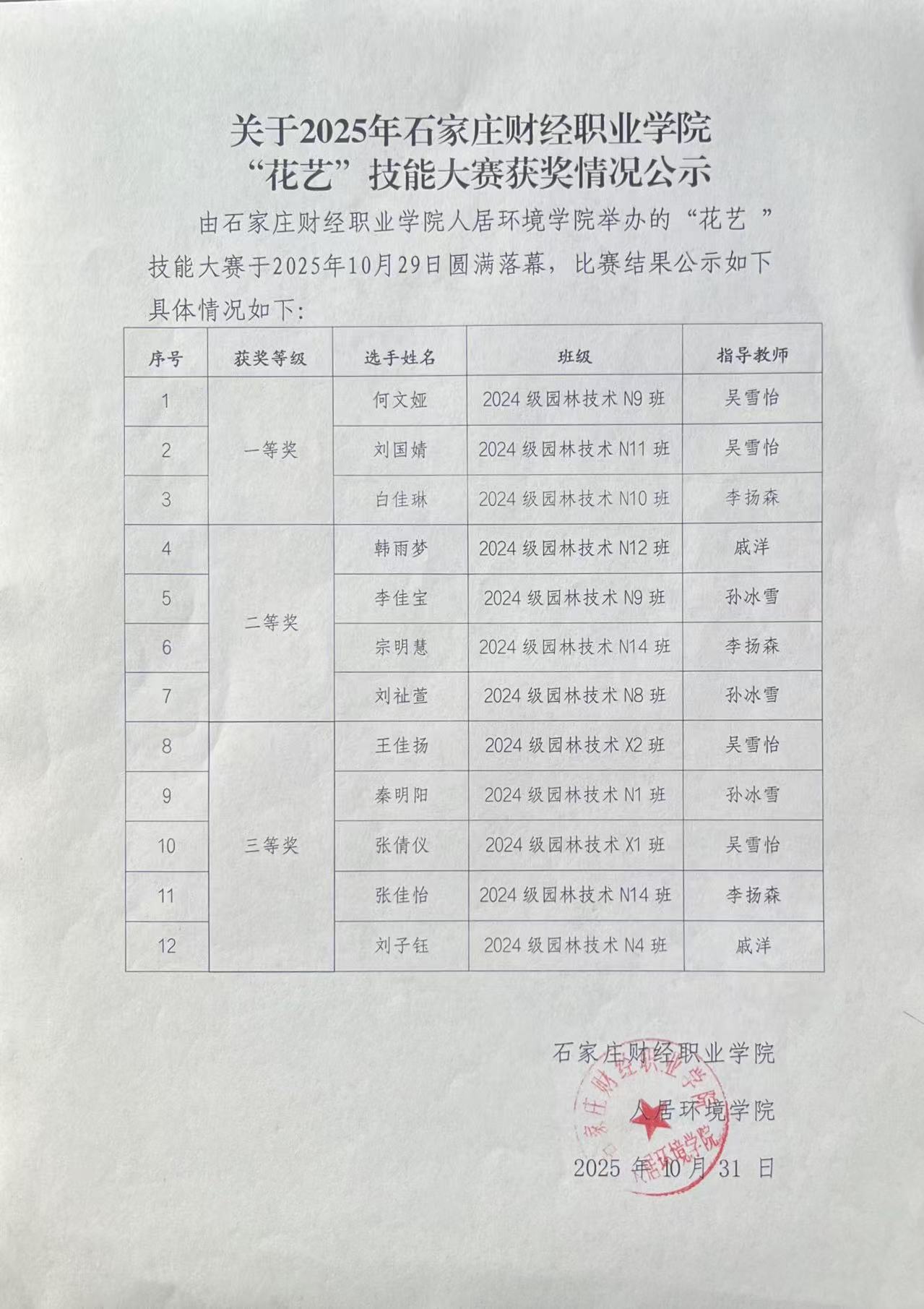 关于2025年Beat365官方网站“花艺”技能大赛获奖情况公示