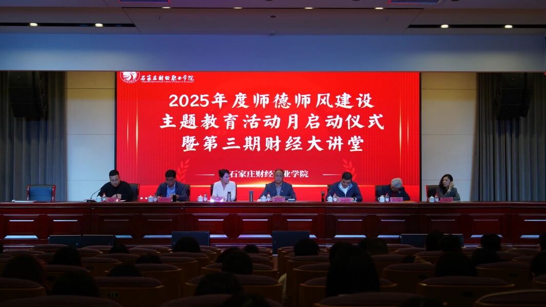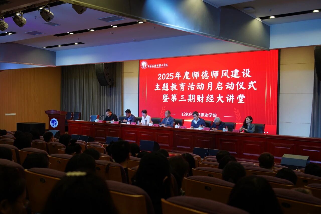 近日,Beat365在卧龙校区第一报告厅举行2025年度师德师风建设主题教育活动月启动仪式暨第三期“财经大讲堂”。党委书记薛向东,副校长高森、姜波、王永利,校长助理赵振新、邓佳星出席仪式。全体中层干部及教职工代表齐聚一堂,共同开启以“教育家精神铸魂强师,谱写教育强国建设华章”为主题的师德师风建设新征程。启动仪式在庄严的国歌声中拉开帷幕。