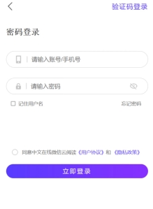 • 若账号已绑定手机号码:输入账号、密码,进行登录。可勾选“记录用户名和密码”,下次可自动登录 无需再次输入账号、密码;
