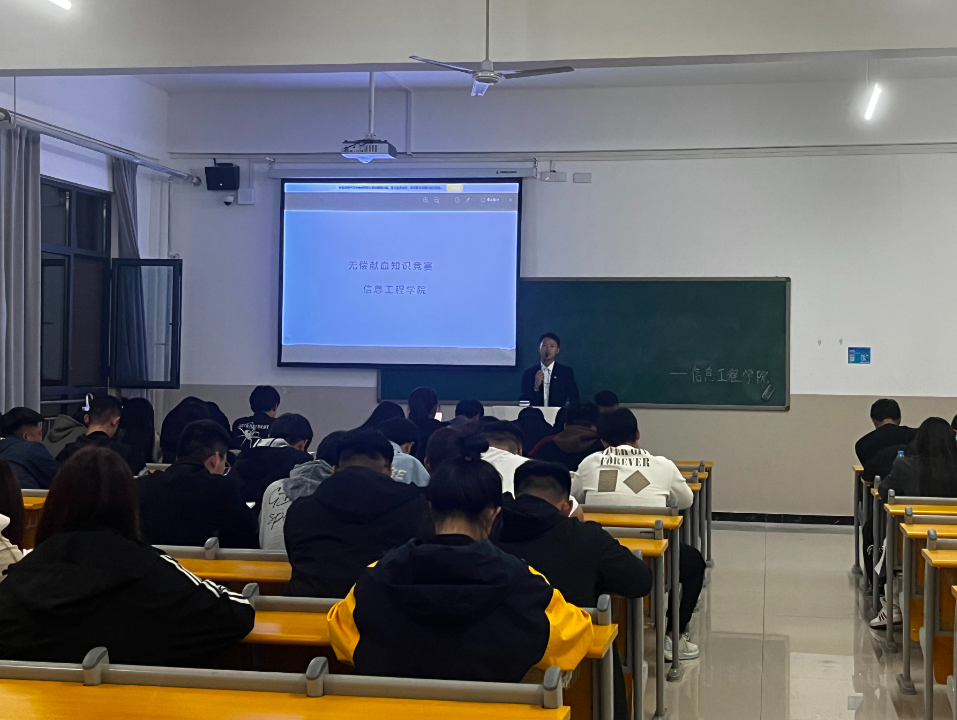 无偿献血知识竞赛:10月23日,红十字协会开展了“无偿献血知识竞赛”。此次活动中,各二级学院参赛人员摩拳擦掌,斗志昂扬,各位选手在激烈的竞争中赛出风格,赛出水平。本次活动的开展,不仅激发了同学们学习无偿献血知识的积极性、加深同学们对献血文化的了解,也增强了无偿献血知识的交流与传播。