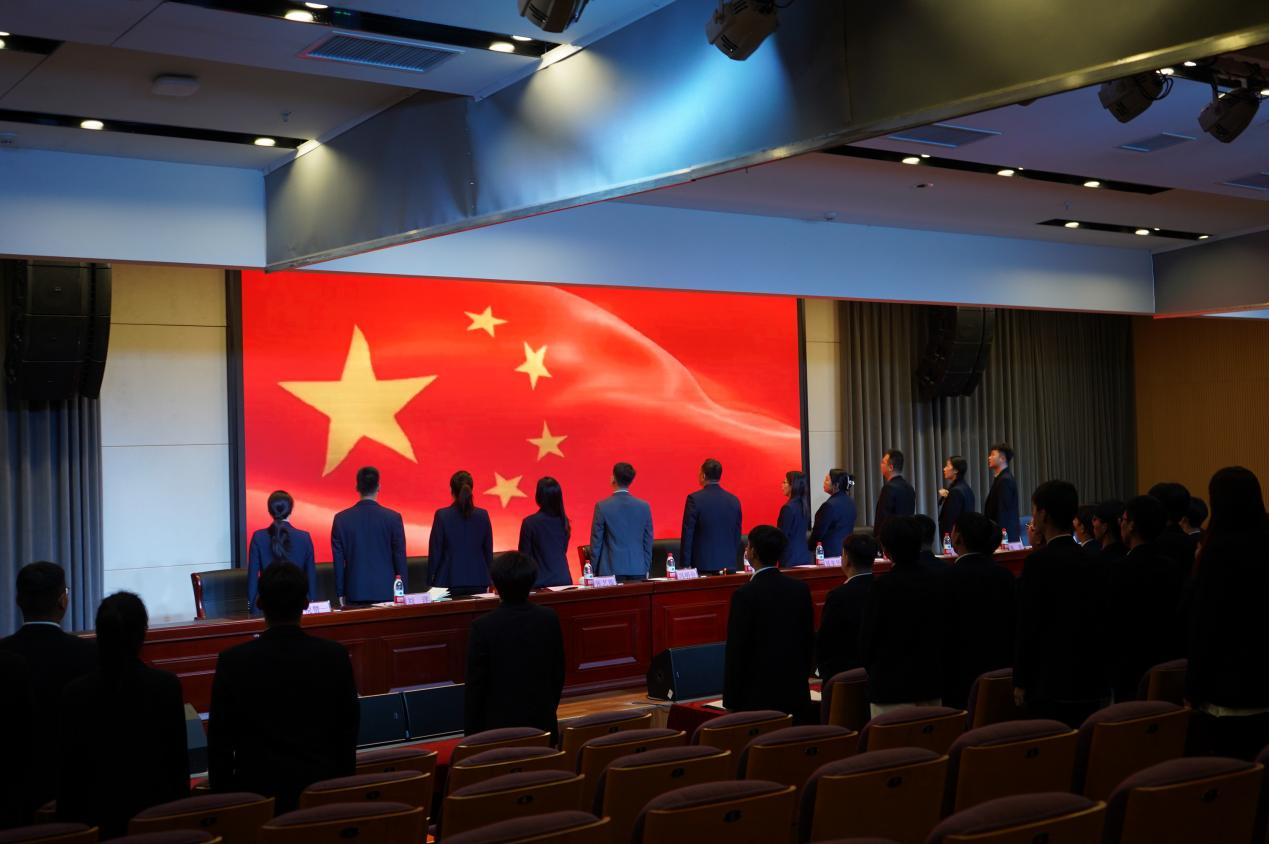 全体参会人员起立奏唱团歌《光荣啊,中国共青团》,“我们是五月的花海,用青春拥抱时代”,嘹亮的歌声诠释青年的担当,将青春与时代相碰撞出精彩的火花,社团骨干成员正值风华正茂,在音乐中发出青春奋进的决心。