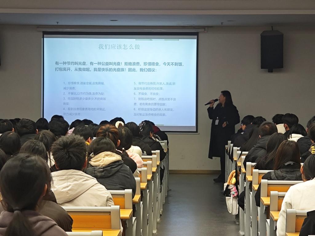 讲座中,宋飒还分享了一些节约粮食的小妙招,如合理规划饮食、适量点餐、剩饭打包等,鼓励大家在日常生活中实践这些方法。此外,她还提倡大家在社交媒体上分享自己的光盘行动,以影响和带动更多的人参与到节约粮食的行动中来。