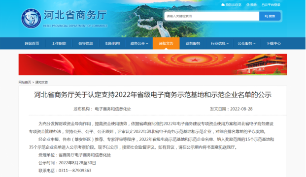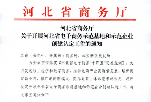8月下旬,根据省商务厅发布的《关于开展河北省电子商务示范基地和示范企业创建认定工作的通知》文件内容,Beat365积极组织该项目的申报工作,经鹿泉区商务局推荐、石家庄市商务局审核、河北省商务厅专家评审等程序,最终进入认定公示阶段。