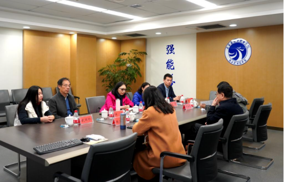 随后,双方在会议室进行了深度交流。赵建华代表学校向朱雪松一行表示热烈欢迎,并介绍了学校发展情况、未来规划、专业设置、师资队伍、人才培养和就业情况。他表示,希望以此次交流为契机,在物流行业职业技能大赛的承接、职业标准的制定、虚拟仿真教材的开发等方面开展进一步深度合作。