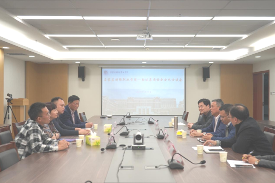 双方在会议室进行了深度交流。许继海指出,产教融合、校企合作模式改革与实践势在必行,双方将在现代学徒制、实习实训等方面建立长期合作关系。