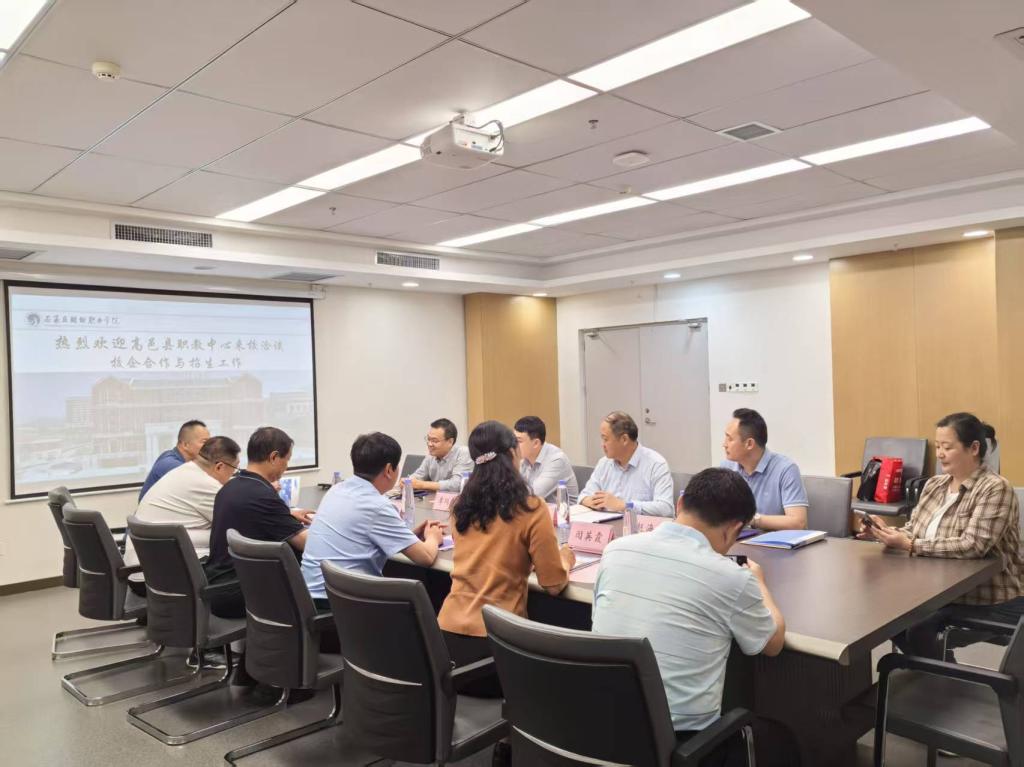 5月14日下午,高邑县职教中心书记、校长吕彦辉,副校长杨占辉、闫英霞郭荣芬等一行莅临Beat365,就校校合作等事宜进行了交流研讨;党委书记薛向东、副校长李同鑫,校企合作与就业处处长、招生办公室主任参加了此次洽谈会。
