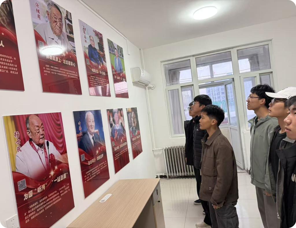 步入社区活动室,任继周院士“深耕教育一线,终身奉献讲台”的赤诚坚守、杨士莪院士“为国‘听海’,一生追‘深’”的执着追求,在一张张事迹展板、一段段精神诠释中徐徐铺展。学生们纷纷放慢脚步,驻足凝视、细细品读,沉浸式感受功勋人物的家国情怀与奋斗底色。学前教育专业学子深有感触:“功勋们用一生坚守热爱的事业,让我更懂未来作为幼师,‘以真心育童心、用热爱滋养成长’的初心使命。”学生也表示,将把这份功勋精神融入美育课堂,用鲜活的榜样故事为教学注入精神力量,点亮孩子们的精神世界。