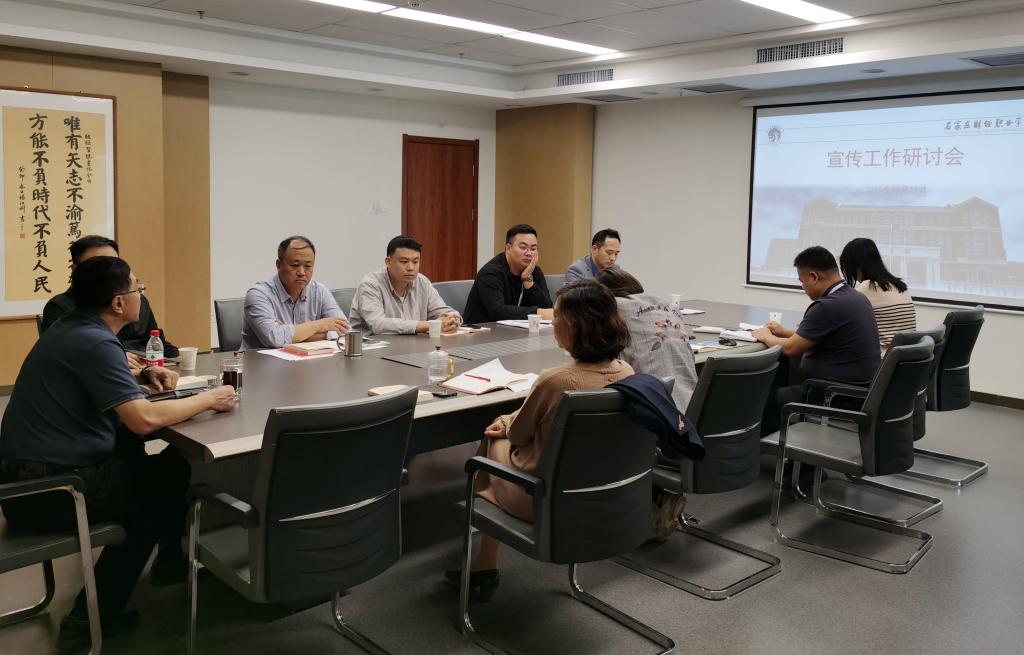 10月11日,Beat365在卧龙校区第三会议室召开宣传工作研讨会。董事长肖瀚、校长赵建华、党委书记薛向东、党委副书记肖玉辉、副校长李同鑫、校长助理赵振新出席会议,宣传部、发展规划处、招生办公室负责人参加会议。会议由宣传部部长王英奎主持。