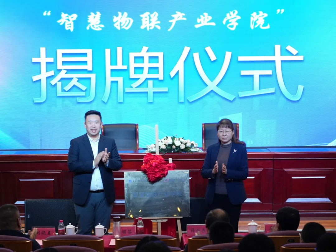 致辞结束后,在全场嘉宾的热烈掌声中,薛向东书记和大华公司区域经理李辉共同为“远程运营服务中心”揭牌,大华公司副总经理段成钢为 “智慧物联产业学院” 揭牌,李同鑫副校长和大华公司总监伍小明共同签署了校企合作协议。这标志着双方的合作正式启动,将在未来的日子里携手共进,为智慧物联产业的发展贡献力量。